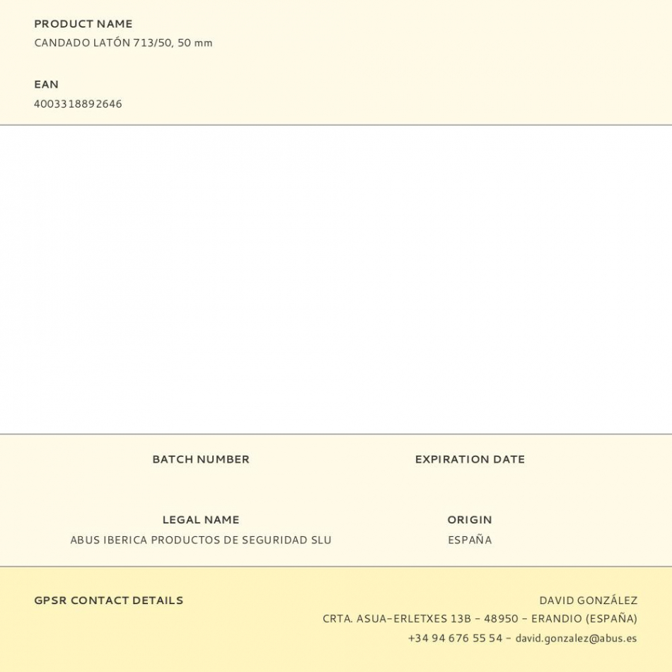 Fabricante:   ABUS    P/N:      EAN:  4003318892646    Código:  364931