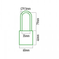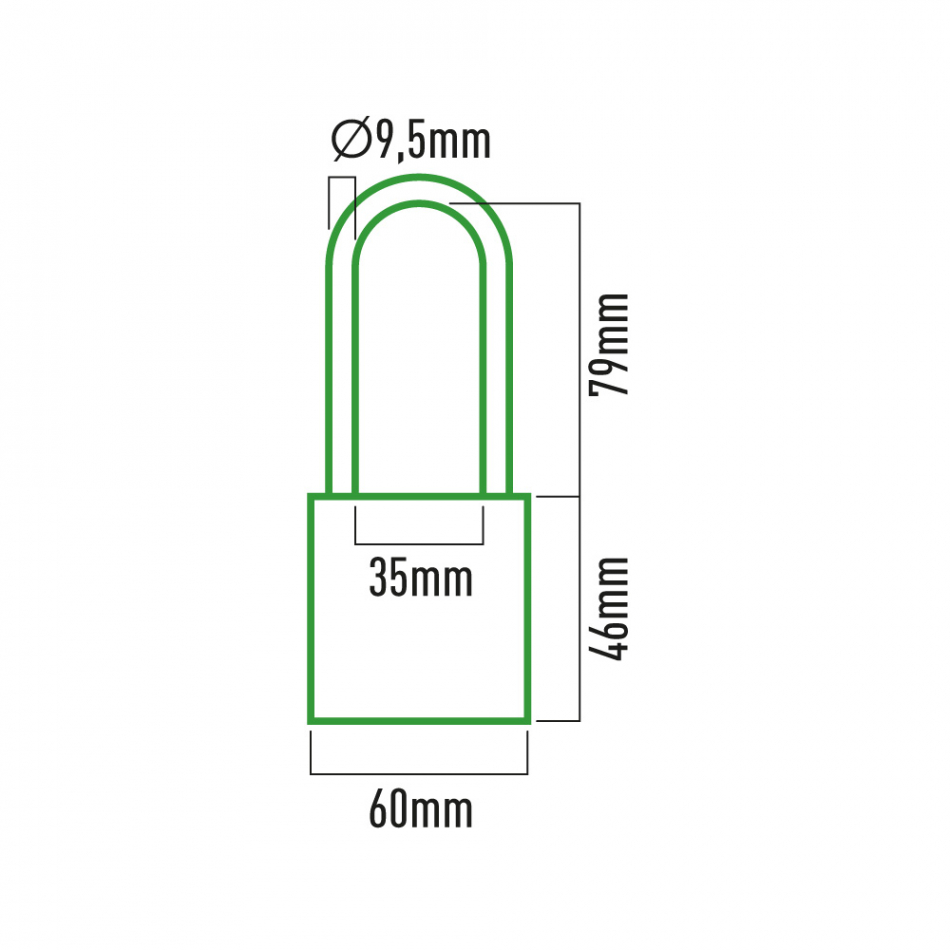 Candado latón arco largo con 3 llaves incluidas, medidas candado: 60 x 20 x 46 mm, medidas arco :ø9,5 mm 35 x 79 mm, color dorado y cromado