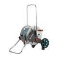 Carro de metal con manguera gardena. manguera de ø15mm (5/8") 25m. manivela de metal. soporte plegable. manillar de altura ajustable. conexión inclinada de la manguera. sistema anti-goteo. manivela lateral de libre movimiento (derecha/izquierda). sistema kick & stand. conexiones original gardena system y lanza.