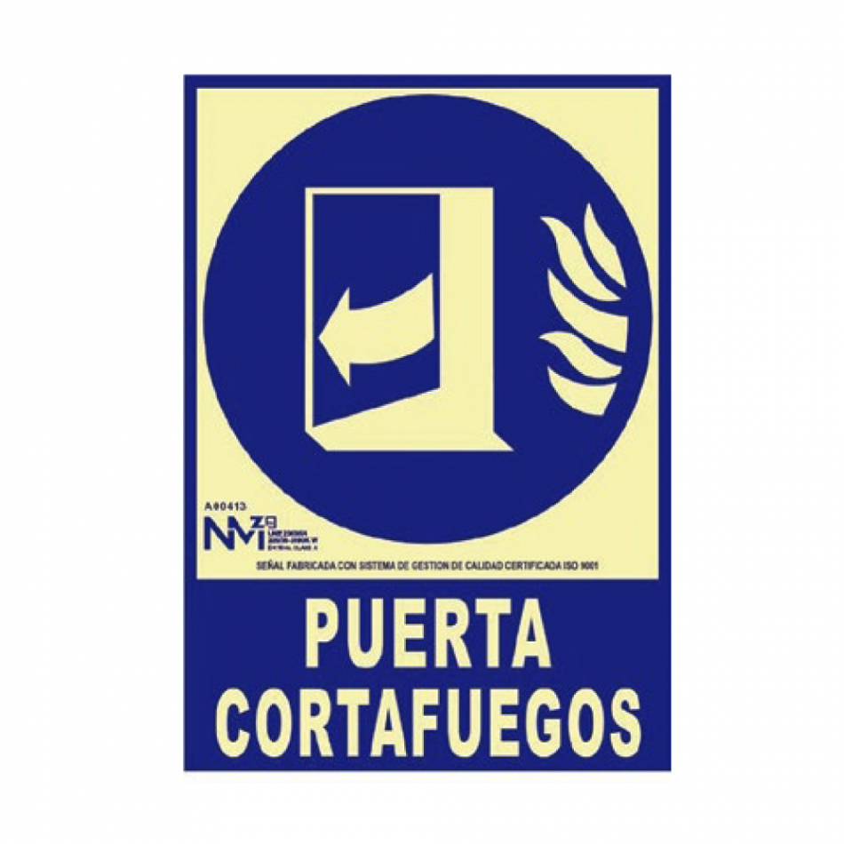 Cartel de extinción "puerta cortafuegos" clase b (pvc 0,7mm) 21x30cm normaluz