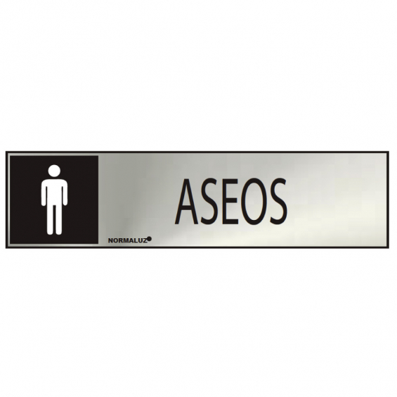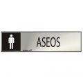Cartel informativo "aseos" hombre (inox adhesivo 0.8mm) 5x20cm normaluz