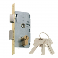 Cerradura de embutir 1 punto 2501-235an311 mcm medida entre ejes 47mm picaporte y palanca, cilindro serie e, acabado latonado. entrada 35. contiene 3 llaves de serreta