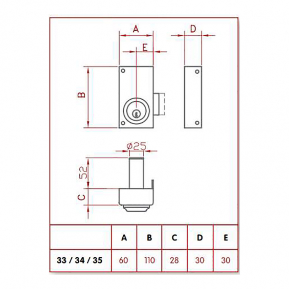 Cerradura de sobreponer solo llave. derecha jis 33-6d jis cerradura de sobreponer de piso de 60mm. solo llave mano derecha cilindro fijo de 52mm 3 llaves