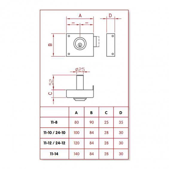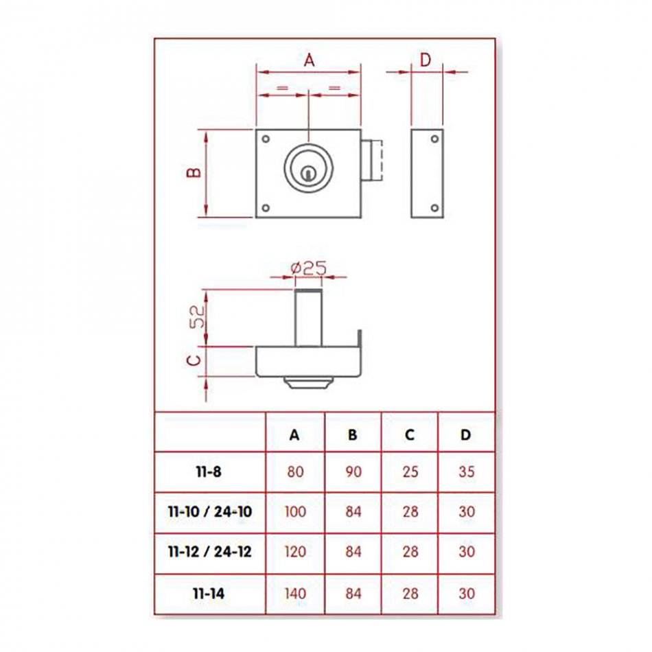 Cerradura de sobreponer solo llave. izquierda jis 11-10i jis cerradura de sobreponer de piso de 100mm. solo llave mano izquierda, cilindro fijo de 52mm. 3 llaves