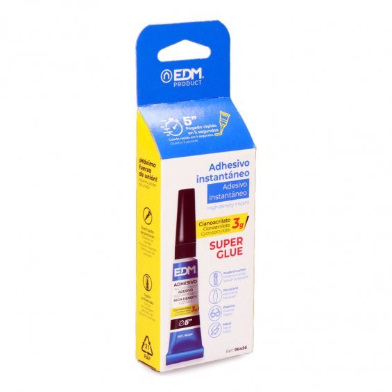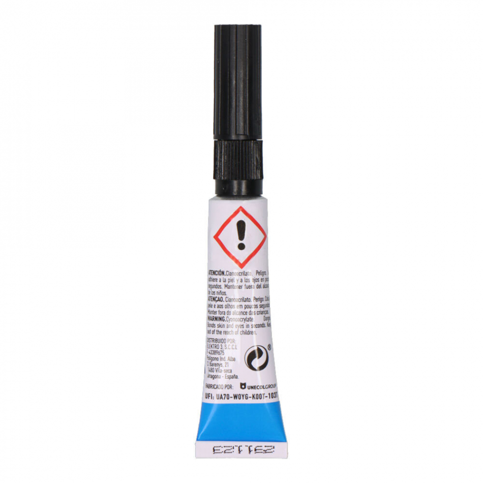 Cianocrilato 3 g, unión de gran diversidad de materiales, como metales, porcelana, mármol, plásticos, goma, vidrio, caucho, madera, etc. entre sí o combinados. empleo en bricolaje y en industria en general.