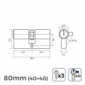 Cilindro de latón 80mm (40+40mm) leva larga r15 con 3 llaves de serreta incluidas