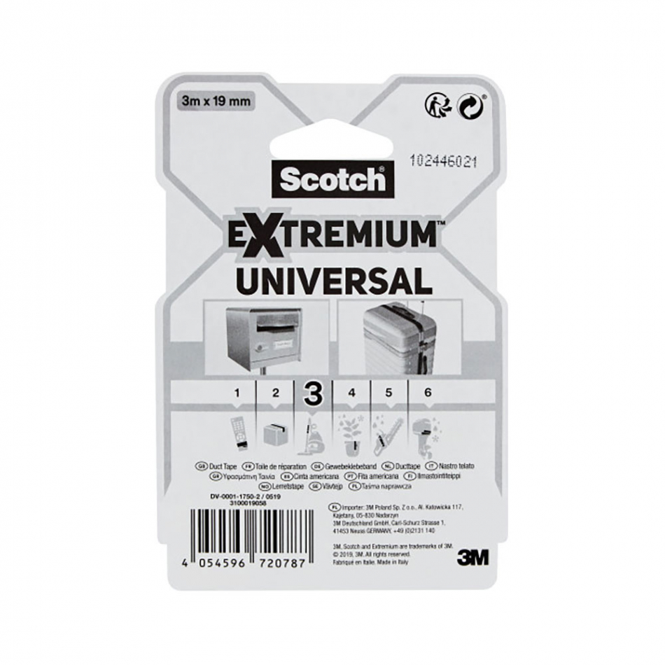 Cinta americana extremium 3, universal, 3 m x 19 mm, gris