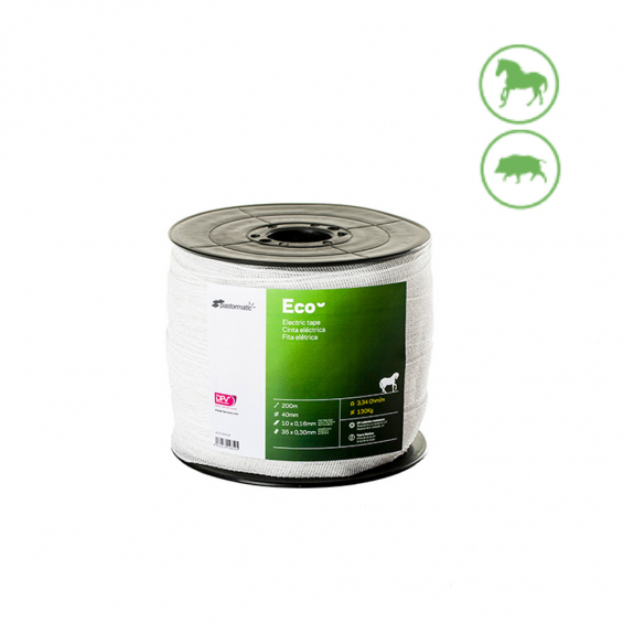 Cinta conductora 40mm pastormatic. 10 cords conductores: (0, 16mm acero inox.) 34 cords: (0,30mm) . longitud 200m. resistencia eléctrica (ohm) 3,34. carga rotura: 130kg.