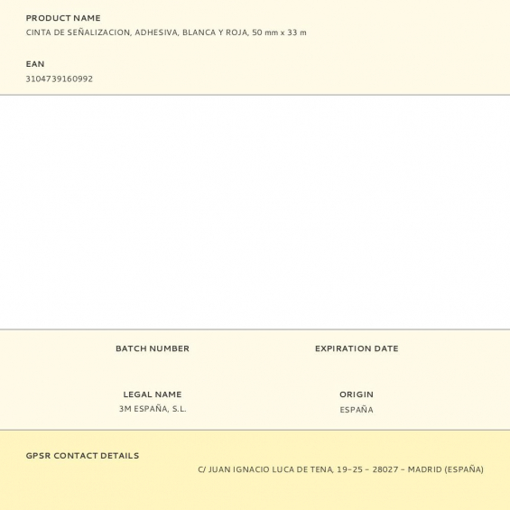 Cinta de señalizacion, adhesiva, blanca y roja, 50 mm x 33 m