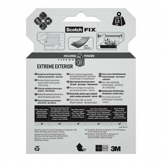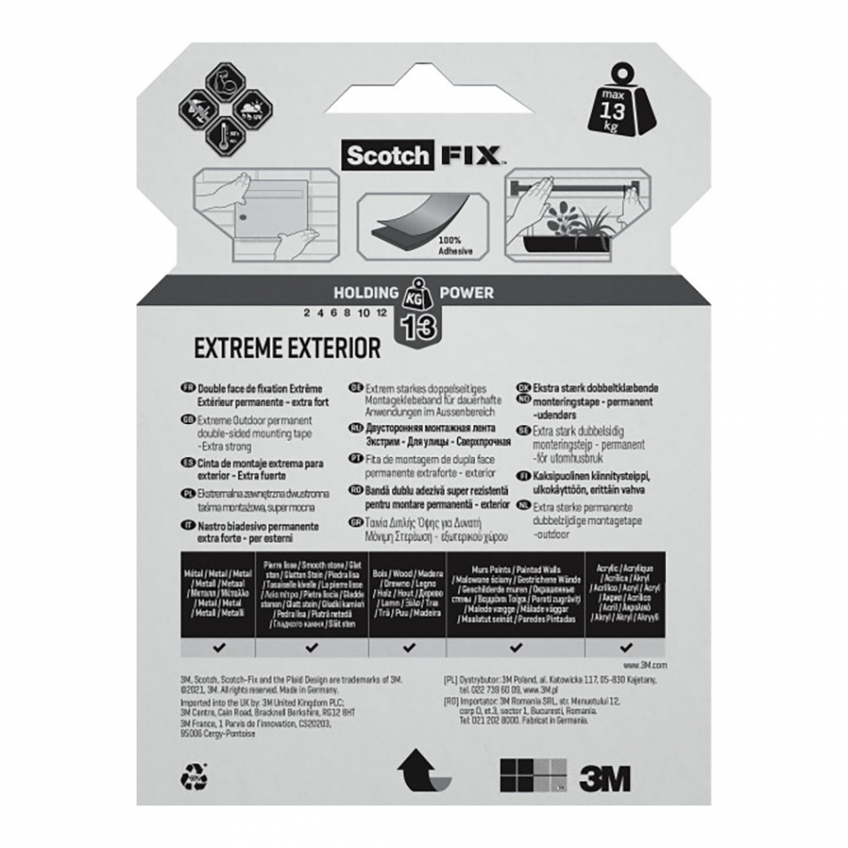Cinta doble cara de montaje para exteriores extreme, 19mmx5m, máx 13 kg
