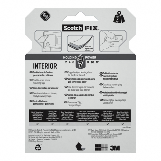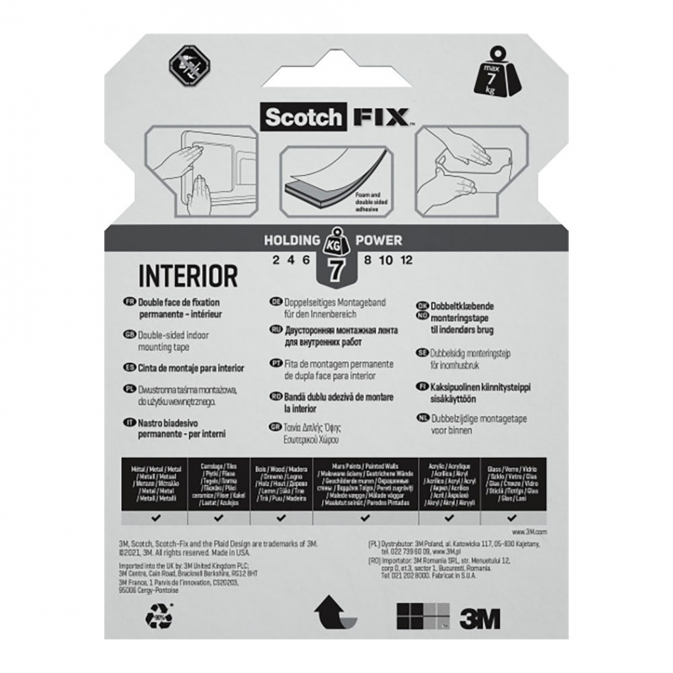 Cinta doble cara de montaje para interiores, 19mmx5m, máx 7kg