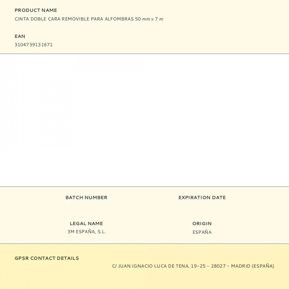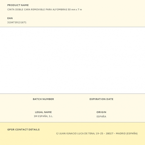Cinta doble cara, para alfombras, removible, 7 m x 50 mm