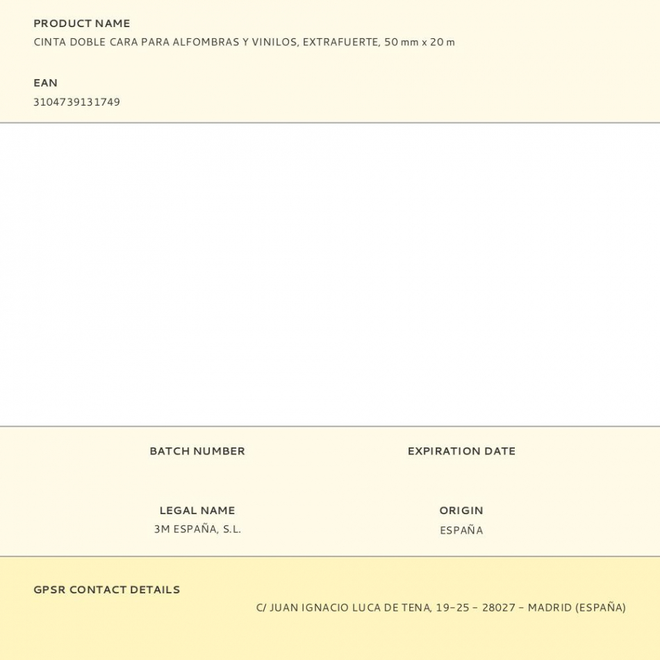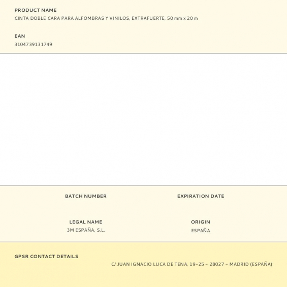 Cinta doble cara, para alfombras y vinilos, extrafuerte, 20 m x 50 mm