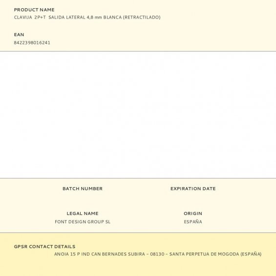 Clavija 2p+t salida lateral 4,8 mm blanca (retractilado)