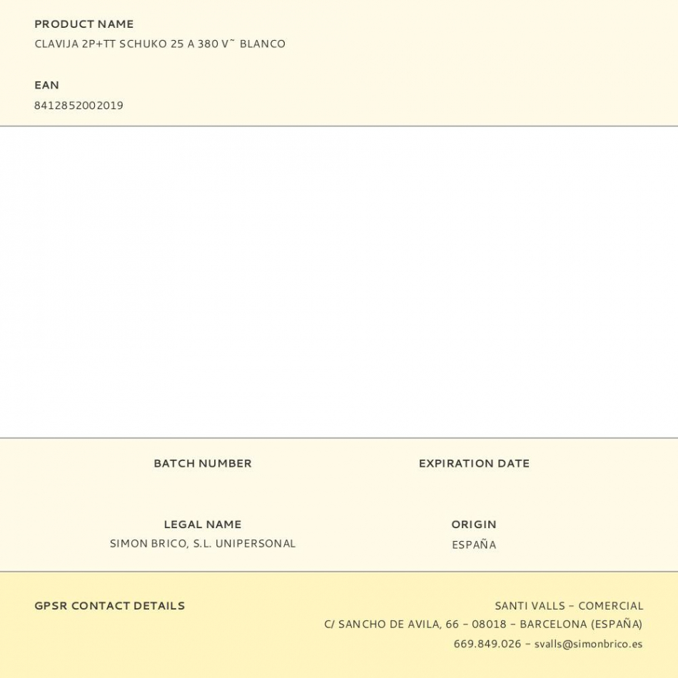 Fabricante:   Simon    P/N:      EAN:  8412852002019    Código:  375864