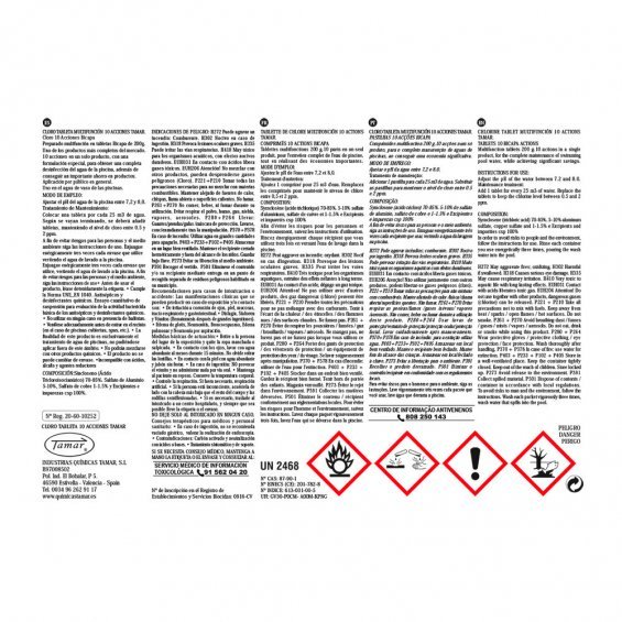 Cloro 10 acciones tableta 5kg fusion tamar "utilice los biocidas de forma segura. lea siempre la etiqueta y la informacion sobre el biocida antes de usarlo"