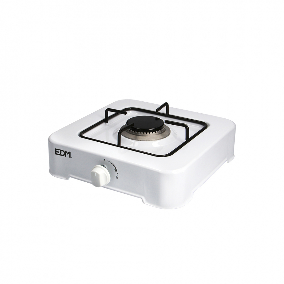 Cocina de gas esmaltada 1 fuego ø75mm. color blanco. para utilizar solo con gas butano y solo en exteriores. dimensiones: 32x33x8cm edm