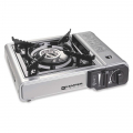 Cocina portatil para camping, para cartuchos de 227 g (no incluido), compacta, ingnicion piezo eléctrica, 90 minutos de autonomía a máximo rendimiento, incluye maleta para transporte 34,2 x 28 x 11,8 cm