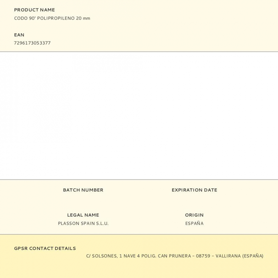 Fabricante:   PLASSON    P/N:      EAN:  7296173053377    Código:  380294