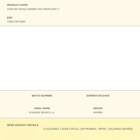 Fabricante:   PLASSON    P/N:      EAN:  7296173373642    Código:  380333