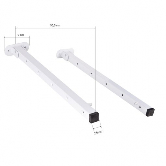 Tendedero de pared abatible con juego de dos soportes ideal para quienes buscan una solución de secado práctica, resistente y que ahorre espacio en hogares con patios, balcones o zonas interiores reducidas. Este tendedero se adapta perfectamente a diferentes necesidades de espacio y uso, ya que está pensado para facilitar su instalación en cualquier entorno. Cada uno de los soportes que integra este tendedero está fabricado en acero de gran durabilidad, con un acabado lacado y un tratamiento de tinta epoxi que protege contra la humedad, la corrosión y el desgaste, asegurando así un uso prolongado en exteriores e interiores. Con un grosor de 2,5 cm, estos soportes resultan robustos y compactos. Además, cada soporte incluye 5 orificios de sujeción, lo que permite colocar hasta cinco cuerdas (no incluidas) para crear un sistema de tendido completamente personalizado. También cuenta con un área de tendido de hasta 150 cm entre ambos extremos, lo que ofrece una gran capacidad de secado sin ocupar espacio de forma permanente, ya que pueden plegarse hacia la pared cuando no se está utilizando. El tendedero incluye una práctica caja con tornillos y tacos para facilitar la instalación sin necesidad de adquirir piezas adicionales. Se recomienda utilizar la cuerda especial para tendederos Cofan, referencias 08101236, 08101237, 08101238 y 08101239, ideal para una sujeción resistente y duradera. Este tipo de tendedero es perfecto para quienes quieren mantener el orden y aprovechar al máximo cada centímetro disponible. Con unas medidas de 50,5 cm de longitud y 9 cm de alto, el tendedero puede colocarse en balcones, patios, lavaderos, terrazas, garajes o incluso en interiores, siendo una solución flexible y funcional para hogares de todo tipo.