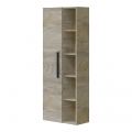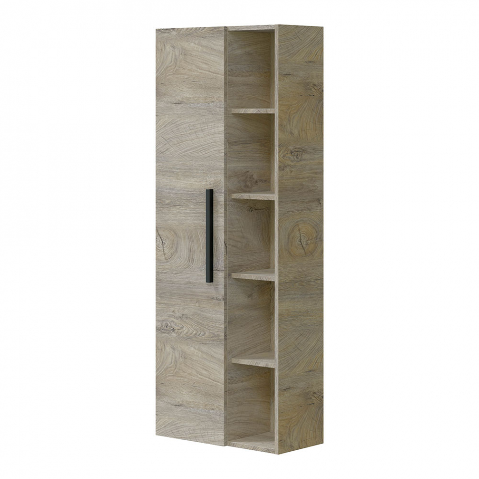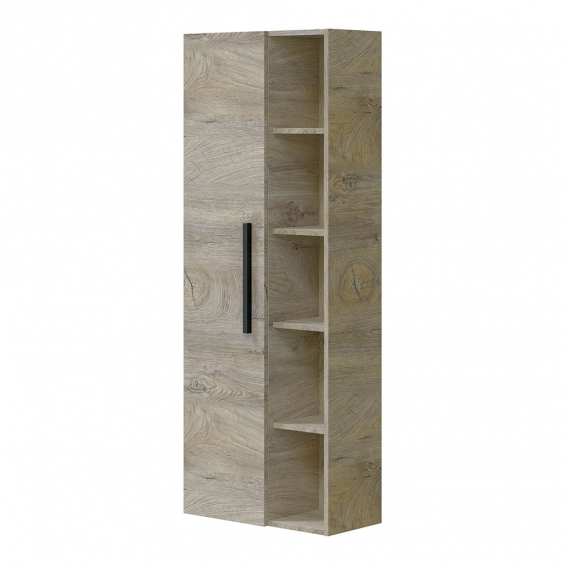 El armario de baño modelo athena color roble alaska fabricado en tablero de partículas melamínicas que cuenta con una puerta con 3 estantes interiores regulables y un hueco abierto con 4 estantes fijos con tirador de aluminio lacado en negro mate.permite el montaje reversible de la puerta a izquierda o derecha. incluye soportes metálicos en los estantes, bisagras, y dispositivos para la fijación a pared. la medida del armario es de 51 cm (ancho) x 25 cm (hondo) x 135 cm (alto). servicio de postventa gratuito: postventa@fores-group.com
