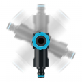 Conector angular reforzado con rosca hembra y forma ergonómica para una conexión rápida y cómoda a la fuente de agua. con posibilidad de giro horizontal de 360° y vertical de 180. apto para grifos de g1/2", g3/4" y g1. fabricado en material abs. máx 6 bar