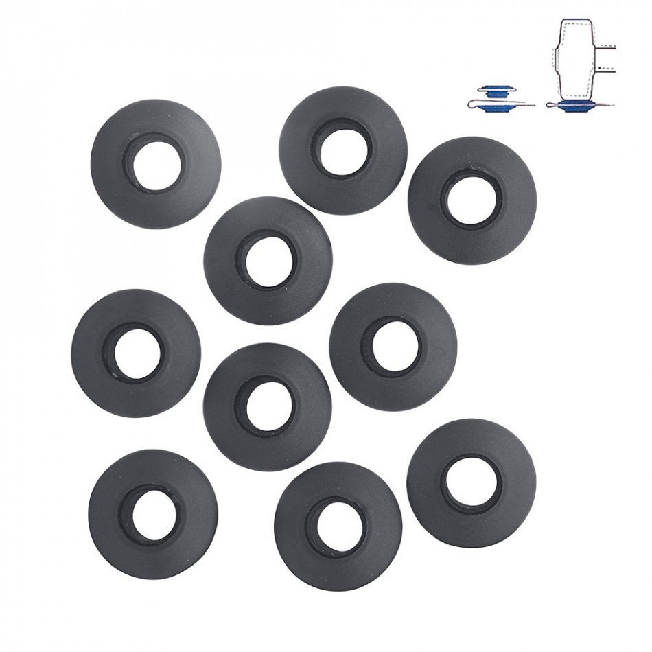 Conjunto de 10 anillas de plástico para toldos y lonas. medida: ø2,8 x 0,7 cm. color negro