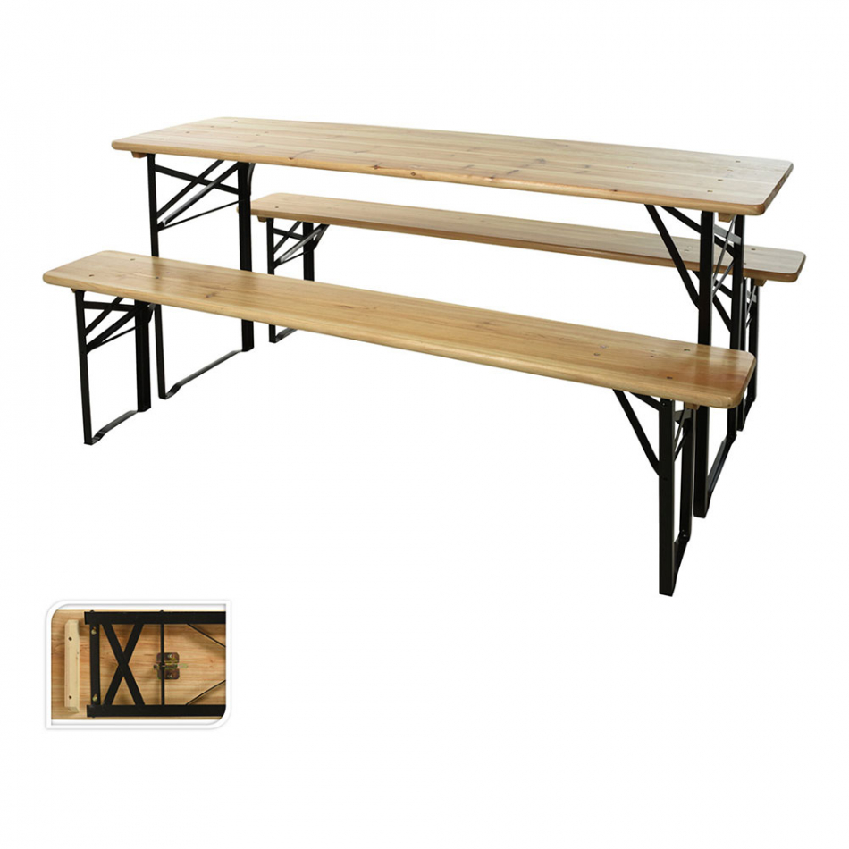 Conjunto de 3 piezas de madera, mesa y dos bancos (peso máximo admisible 250 kg), medidas: mesa 180 x 50 x 76 cm bancos 180 x 25 x 46 cm