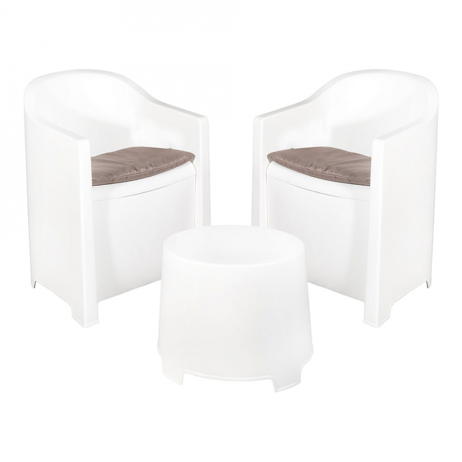 Conjunto terraza luna sluc06bg ipae progarden set luna blanco compuesto por 2 butacas con cojín y 1 mesita auxiliar