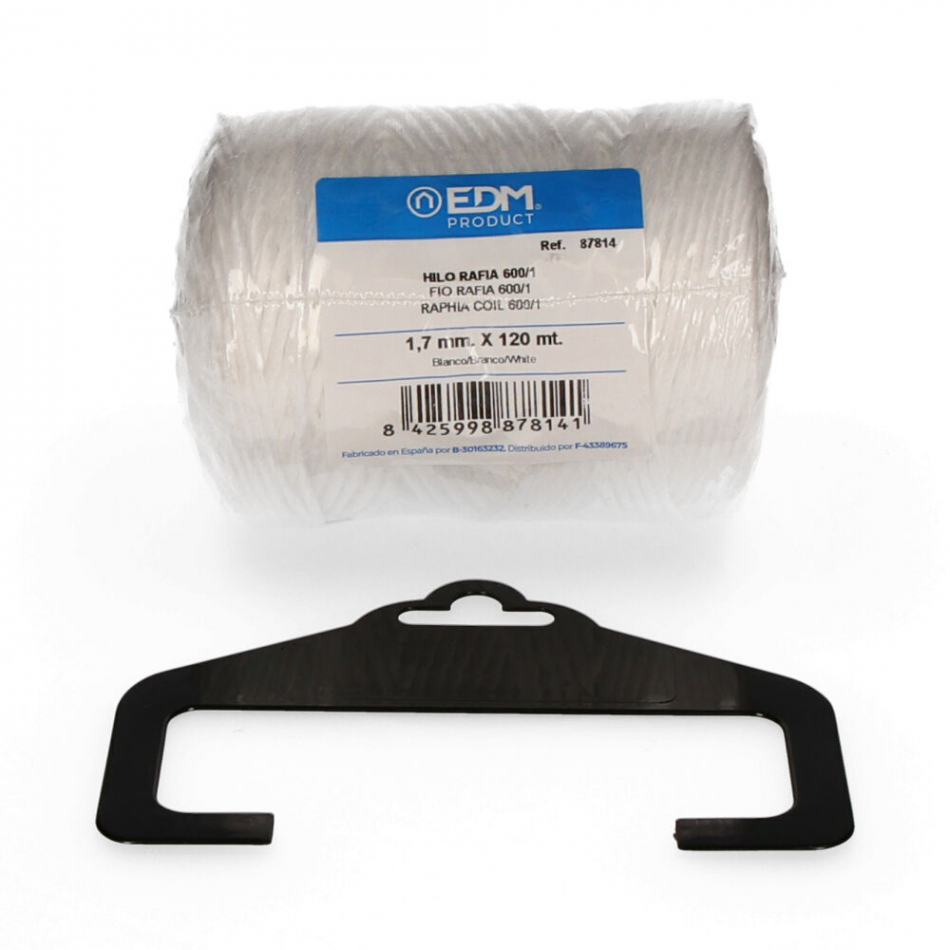 Cordel rafia 600/1 bobina 220g/120m blanco. composicion: multifilamento de polipropileno 100% torcido a diferentes cabos. caracteristicas: flexible, buena resistencia, no se deshace, poca elasticidad. seguridad en el nudo. utilidades: paqueteria en general, agricultura, artesania, floricultura, bricolaje