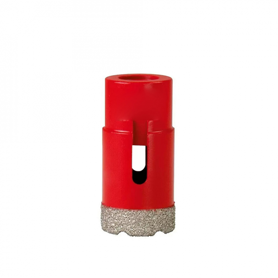 Corona diamantada ø28 mm, de corte seco con inserción m14 para uso con amoladoras. especialmente diseñadas para perforación de gres, materiales porcelánicos y cerámica, también presentan un excelente rendimiento en la perforación de piedras naturales de alta dureza como el mármol o el granito.