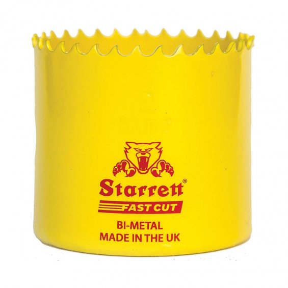 Corona perforadora bi-metal fast cut ø51mm 63fch051 starrett especialmente indicada para el corte de chapa de acero inoxidable y acero templado, las coronas fast cut realizan cortes en tubos con espesor hasta 13mm. características: dentado constante 5.5 dpp. profundidad de corte 41mm. mayor resistencia al calor. máxima duración. excelente acabado del agujero. menor vibración. espesor extra. cobalto hss. husillos recomendados: a10/a10m/a2/a1738/a21. dimensiones: 5,7x6,3x11cm (ancho/fondo/alto) peso: 134g