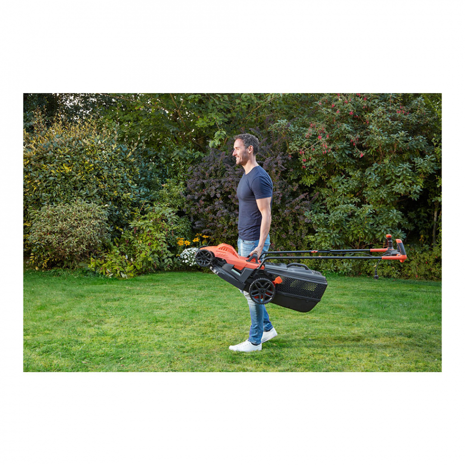 Cortacésped 1600w 220-240v bemw471bh-qs black+decker. ancho de corte 38cm. sistema de corte e-drive. altura de corte: 20-70mm. ideal para cortar hasta 600m², bolsa de 45l, alturas de corte 20-70mm. 95db. vibracion: 2,5m/s²
