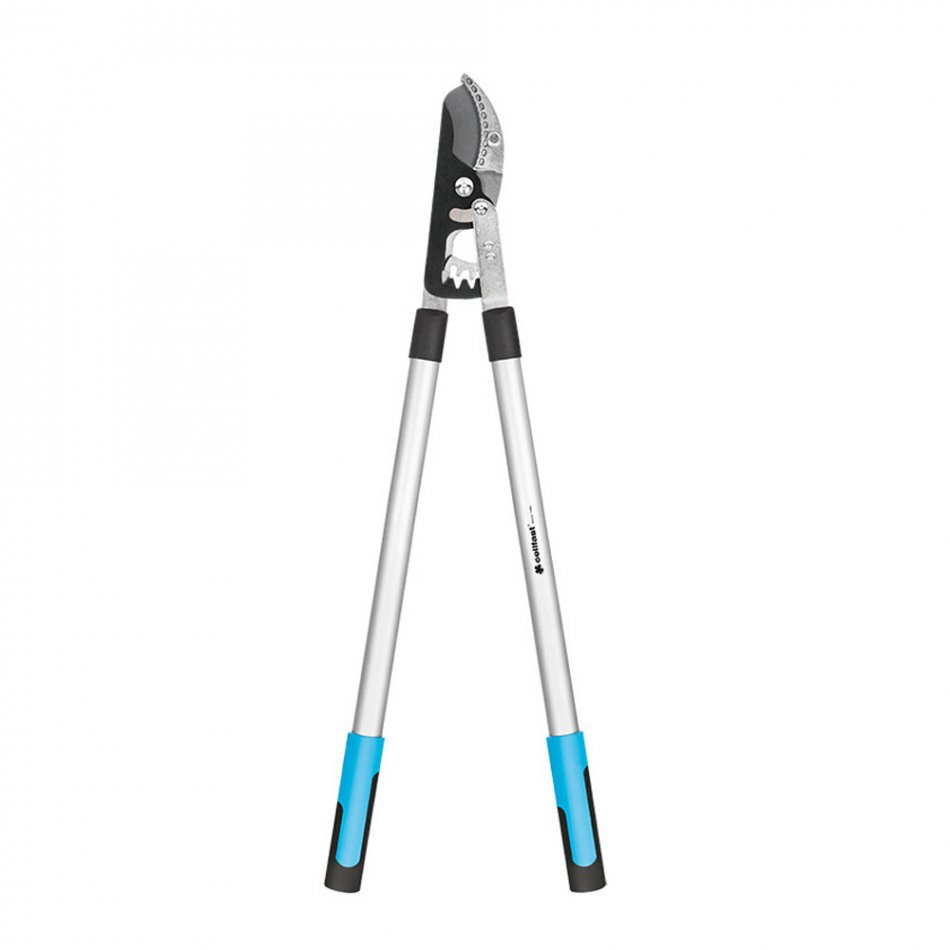 Tijera en forma de yunque para cortar ramas secas. hoja en acero templado que es capaz de cortar ramas de hasta 45 mm. sistema de engranajes que potencial la fuerza del corte y mangos acabados en safe touch, sistema que asegura un confortable y seguro agarre