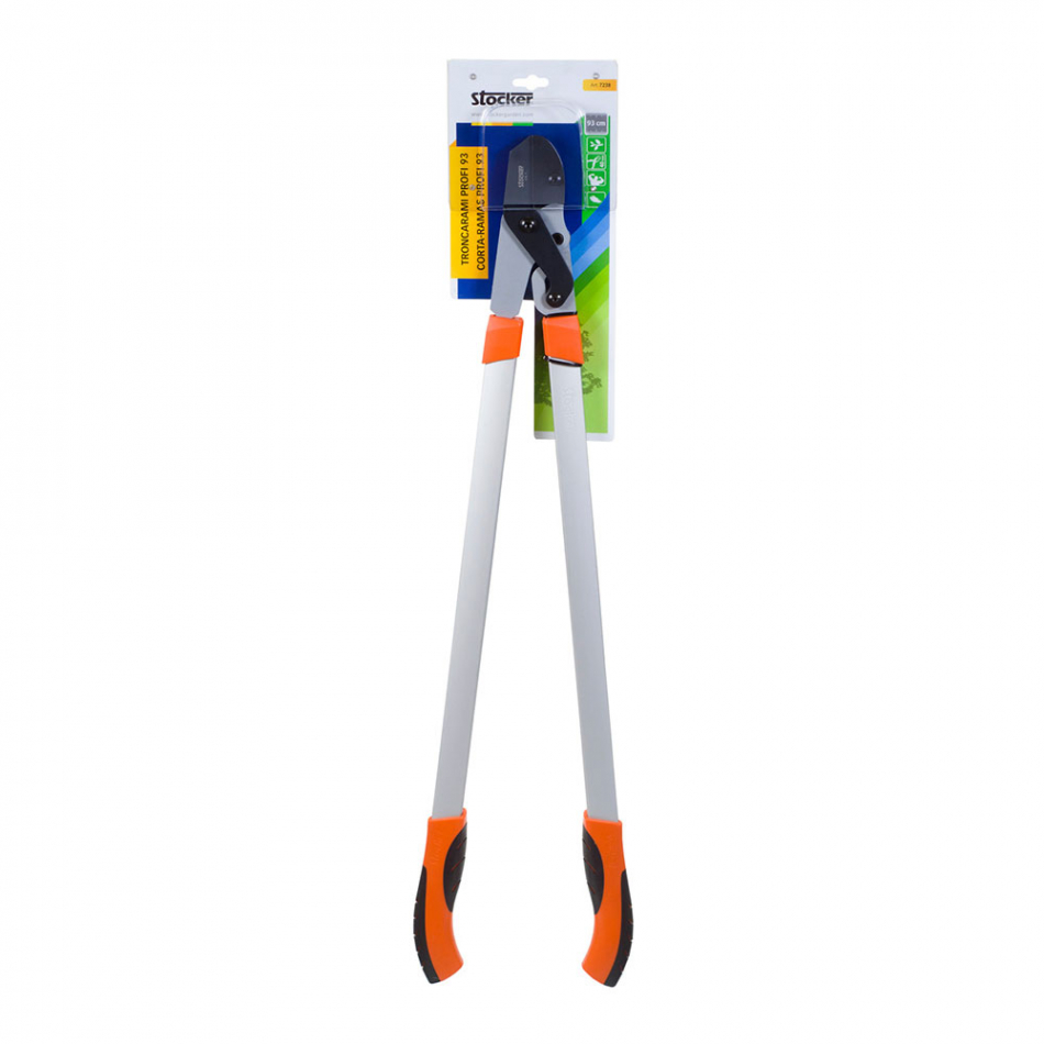 Cortarramas profi 93 de yunque con hoja recta. stocker. cortarramas profesional con corte de yunque. los corta ramas profi están realizados con material de alta calidad y una moderna tecnología. gracias a los tubos de aluminio son ligeros y manejables, mientras los mecanismos de corte imprimen una mayor fuerza para afrontar las ramas más gruesas sin mucho esfuerzo. tubo ligero triangular de aluminio. empuñadura ergonómica. suave antideslizante. capaz de cortar ramas de hasta 40mm de diámetro. longitud: 93cm. peso: 1,4 kg