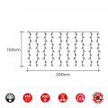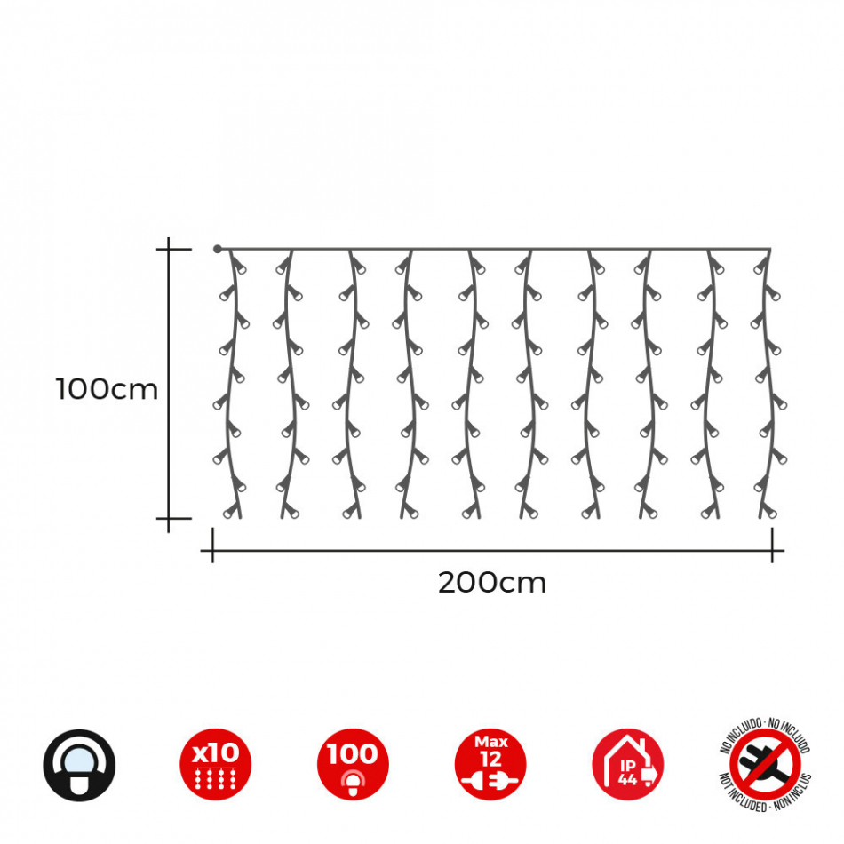 Cortina easy-connect 2x1m, 10 tiras, 100 leds blanco frio, 30v, cable verde, n° interconexiones max. entre cortinas 12, no incluye transformador (este se puede adquirir segun sus necesidades: una cortina de funcion fija o multifuncion), ip44,total 1,8w