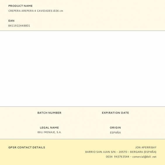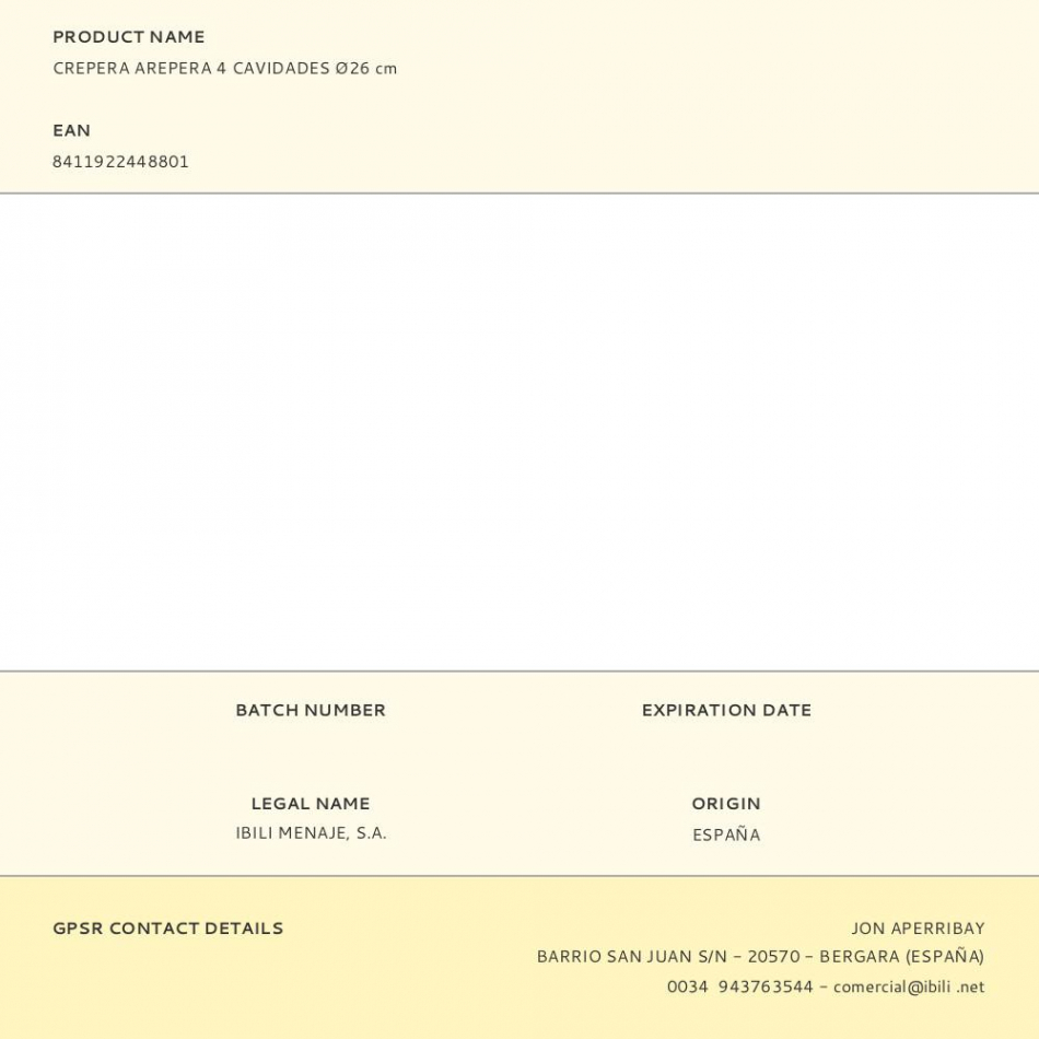 Fabricante:   Ibili    P/N:      EAN:  8411922448801    Código:  365628