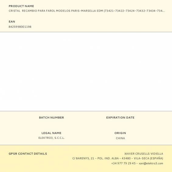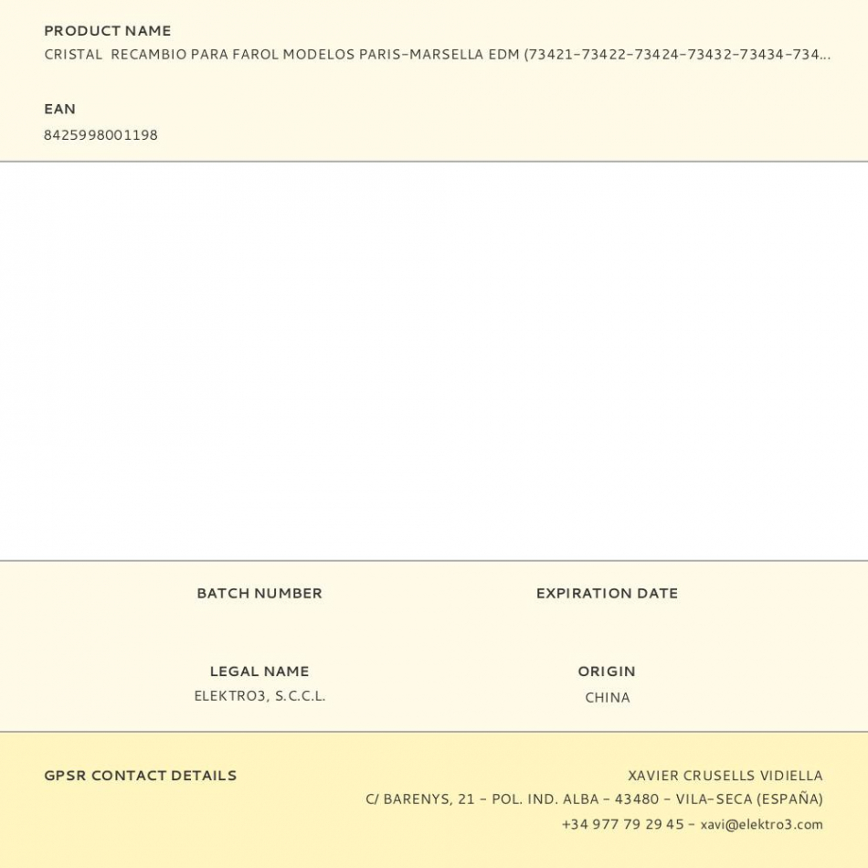 Cristal recambio para farol modelos paris-marsella edm (73421-73422-73424-73432-73434-73431)