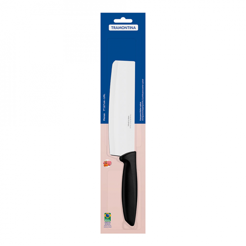 Cuchillo carnicero 7" plenus negro 17,78cm tramontina. acero inoxidable: los cuchillos plenus están elaborados con láminas de acero inoxidable, que tiene más durabilidad debido al tratamiento térmico, su espesor y al estampado de las propias láminas. mangos de polipropileno: los cuchillos están elaborados con polipropileno, que proporcionan una mayor resistencia y durabilidad