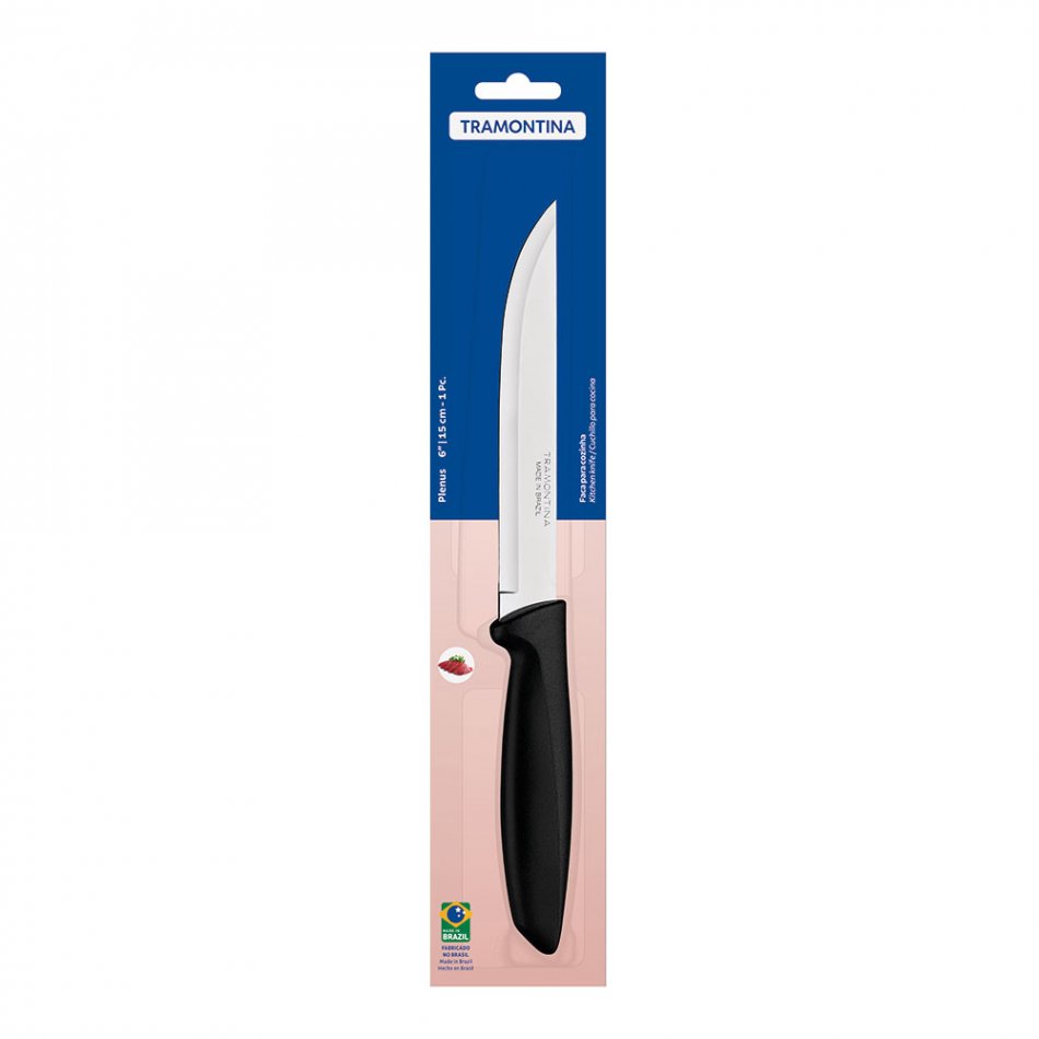 Cuchillo de cocina 6" plenus negro tramontina. acero inoxidable: los cuchillos plenus están elaborados con láminas de acero inoxidable, que tiene más durabilidad debido al tratamiento térmico, su espesor y al estampado de las propias láminas. mangos de polipropileno: los cuchillos están elaborados con polipropileno, que proporcionan una mayor resistencia y durabilidad
