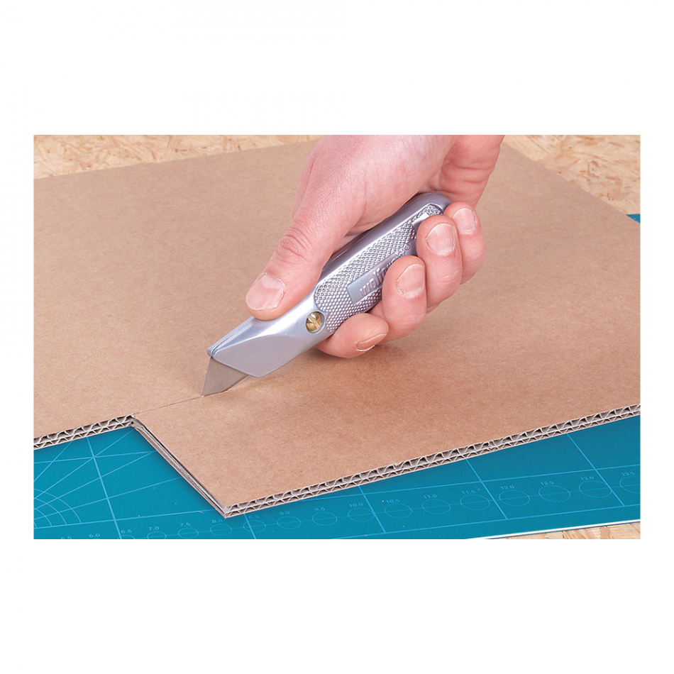 Cúter con cuchilla trapezoidal estándar cúter de cuchilla fija carcasa metálica con superficie especial para un agarre antideslizante compatible con las cuchillas trapezoidales y de garfio convencionales cambio de las cuchillas mediante un tornillo integrado peso: 0,132kg 4150000 wolfcraft