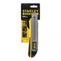 Cúter fatmax® 25mm. cuerpo de acero inoxidable. mango bimateria. cambio rápido de la hoja. gracias a su diseño de almacenaje una vez eliminada la hoja antigua, automáticamente aparecerá la nueva. mecanismo de limpieza de la hoja. botón de bloqueo. este mecanismo evita la oscilación de la hoja y permite realizar cortes más precisos. rompe hojas extraíble. almacenamiento de 4 hojas. stanley