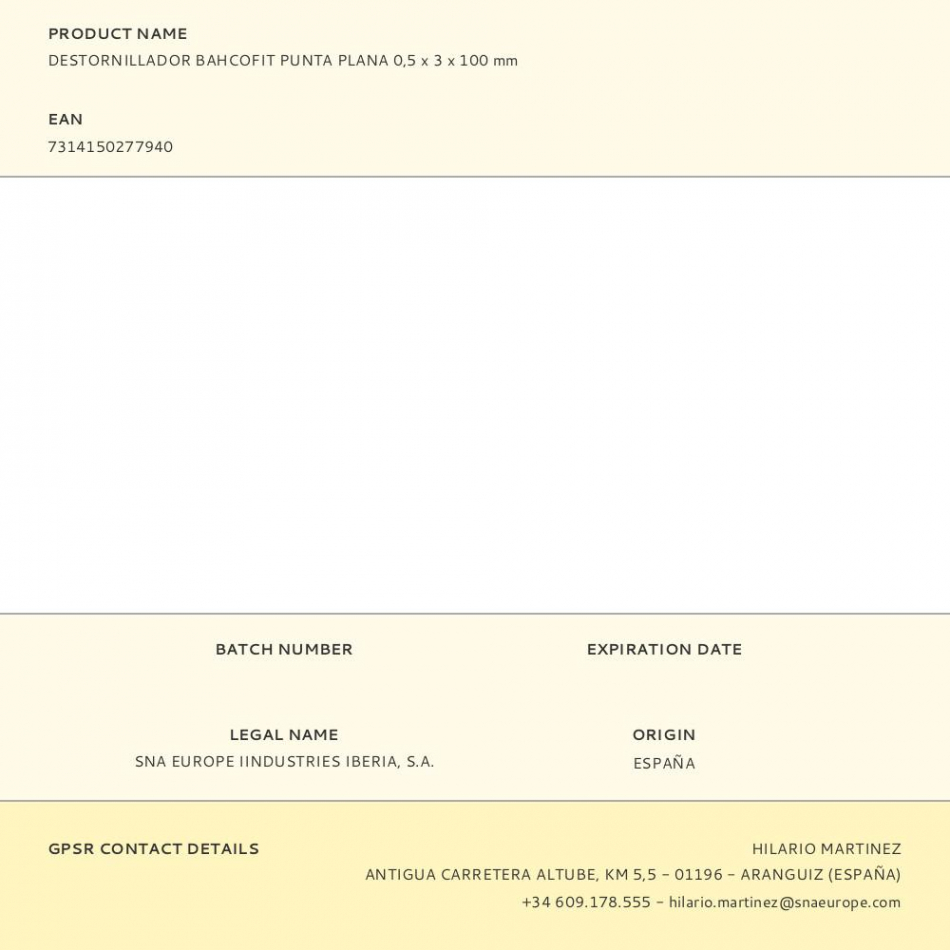 Destornillador de punta plana ranurada bahcofit con agarre de goma, medidas: 0,5x3x100mm