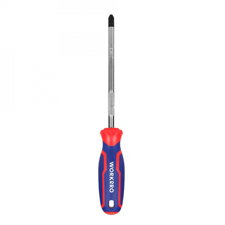 Destornillador phillips cr-v con mango tricolor, ph3x150mm. hoja de cromo-vanadio. punta magnética negra. mango ergonomico de agarre cómodo. workpro