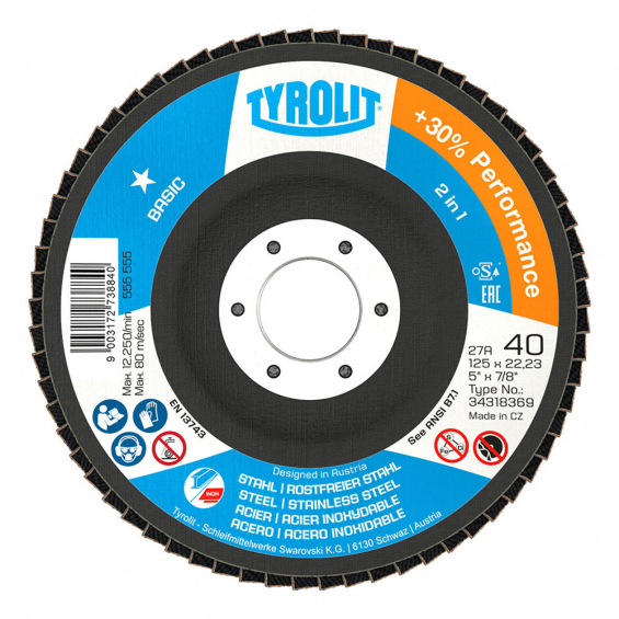 Disco láminas 27cla ø125x22,23 za40q-b. para acero y acero inox. tyrolit
