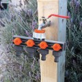 Adaptador de 4 vias para grifo de jardin con enchufes rapidos 19mm 3/4" ø 26,5 mm / ø 33,1 mm cierre de vias independiente con adaptador de rosca. color: gris/naranja. material: polipropileno.