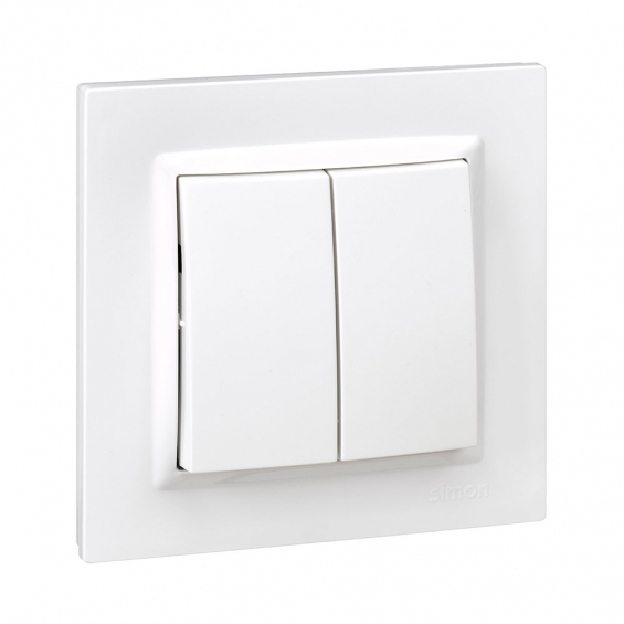 Doble conmutador blanco serie 10. material plástico, ip20, 230v, 10ax. medida 8,4x4x8,4 cm.enclavamiento 2.5cm. con marco.