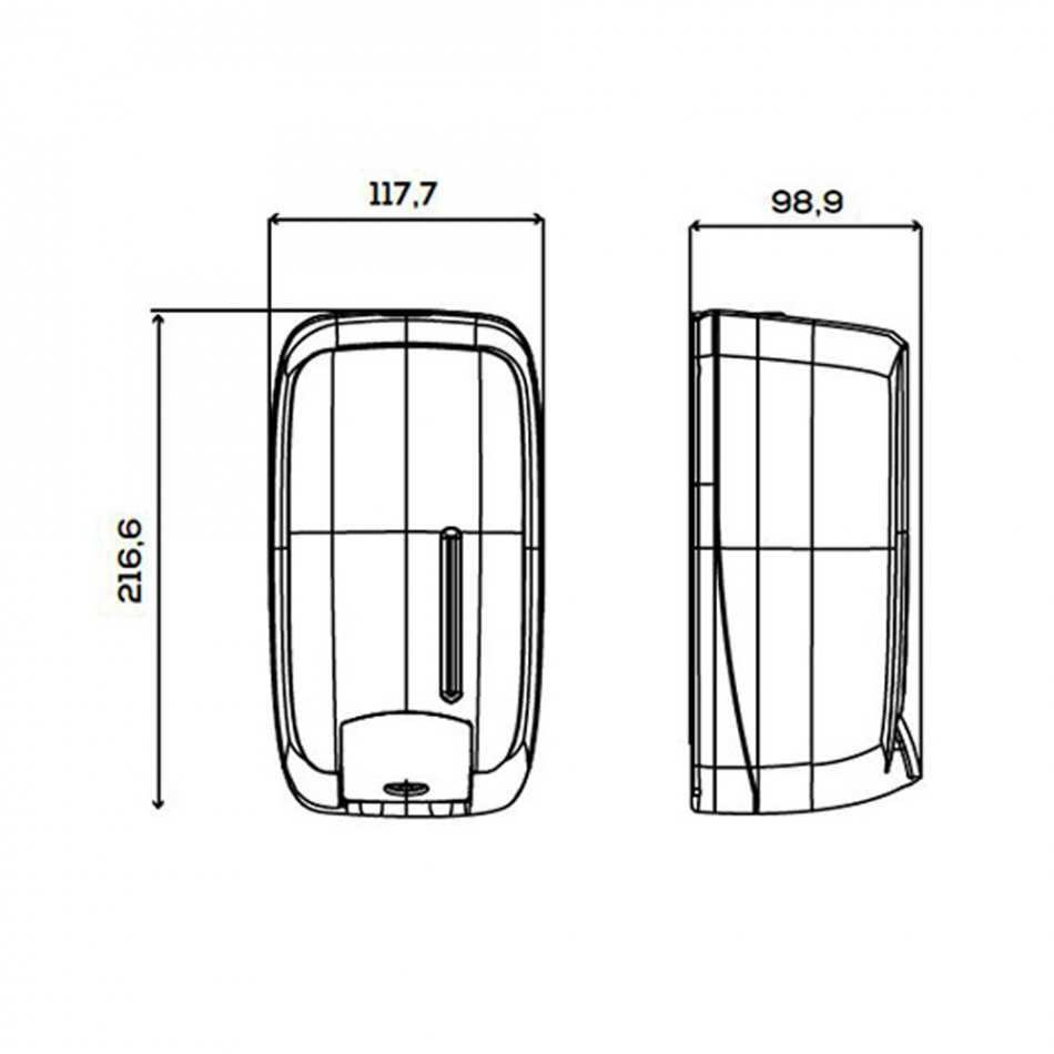 Dosificador de jabón timeless abs reciclado negro jofel. dosificador de jabón líquido con depósito rellenable. depósito transparente en abs 50% reciclado post-consumo de 1l. soporte, carcasa y válvula en abs 50% reciclado post-consumo negro. sistema dual de apertura. cerradura con llave y carcasa negra. pulsador con válvula anticorrosión y antigoteo.permite la total visión de la carga de jabón disponible. máximo rendimiento y larga duración.fácil limpieza y mantenimiento. indicado para colectividades y wc. públicos de alta rotación.