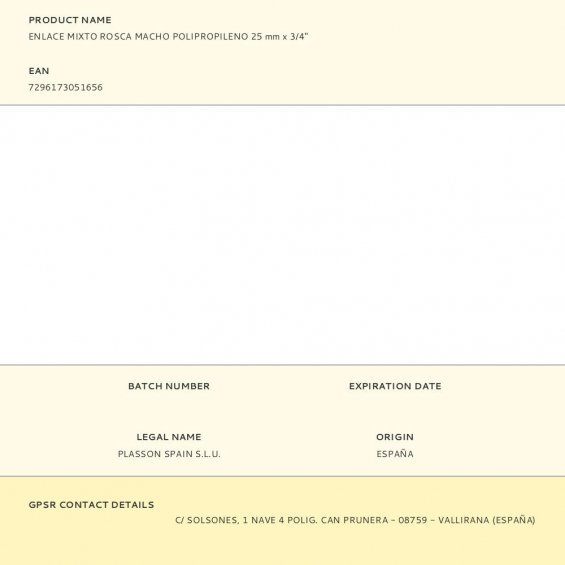 Enlace mixto rosca macho polipropileno 25 mm x 3/4"